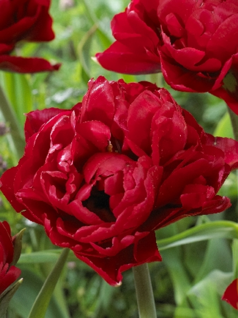 Тюльпан Impact - очень яркий, ранний сорт. Высота растения 35-40 см. Листья зеленые, однотонные. Цветет в апреле-мае. Цветок крупный, пионовидный, густо-махровый, с множеством ярких, алых лепестков, чашевидный, ярко-пламенно-красный.