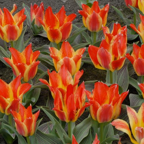 Тюльпан Californian Sun - очень красивый сорт. Растение низкорослое, длина стебля 25 см. Окрас цветков красно-желтый, а именно лепестки красные посередине и желтые по краям. Форма бокаловидная. Цветение продолжительное, с апреля по июнь. Сорт отличается зимостойкостью.