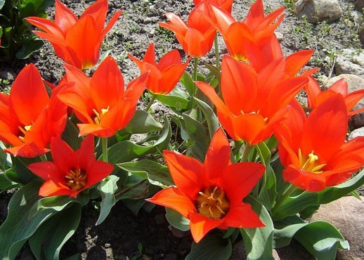 Тюльпан Corsage - растение высотой 30 см. Сорт цветет в апреле. Цветок оранжевый, чашевидной формы, слабомахровый (6-10 лепестков в цветке), осование темно-красное. Высота цветка - 12 см. Листья зеленые, однотонные.