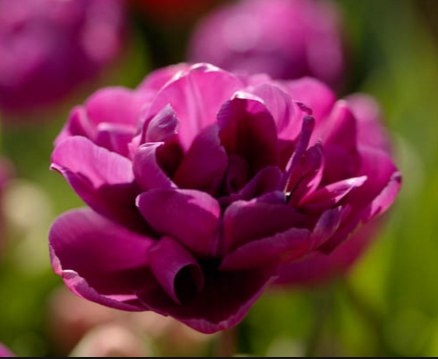 Тюльпан Purple Jacket - поздний сорт. Высота растения 45-50 см. Листья зеленые, однотонные. Цветок крупный, чашевидный, пурпурный, пионовидный, махровый, с множеством лепестков. Цветет в конце весны.