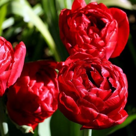 Тюльпан Red Baby Dol - очень красивый сорт с махровыми, яркими насыщенно-красными однотонными махровыми цветками с волнистыми краями лепестков. Стебли высотой 30, тонкие, прямостоячие, мощные. Лепестки небольшие, зеленые с салатовыми оттенками.
