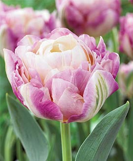 Тюльпан Sweet Desire - многолетнее луковичное растение высотой 50 см с необычными завораживающими цветками диаметром 10 см. Множество бело-сиреневых лепестков образуют шикарный восхитительный бокал. Тюльпан широко используют как для озеленения и украшения клумб, так и для букетов. Цветение наблюдается в средние сроки, с начала до середины мая.