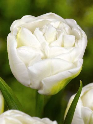 Тюльпан White Heart - очень красивый сорт среднего срока цветения. Массово цветет в апреле. Растение средней высоты. Длина стебля достигает 40 см. Цветки густомахровые, белого окраса с зеленовато-желым оттенком на внешней стороне лепестков. Листья длинные, с острыми окончаниями. Сорт подходит на срезку.