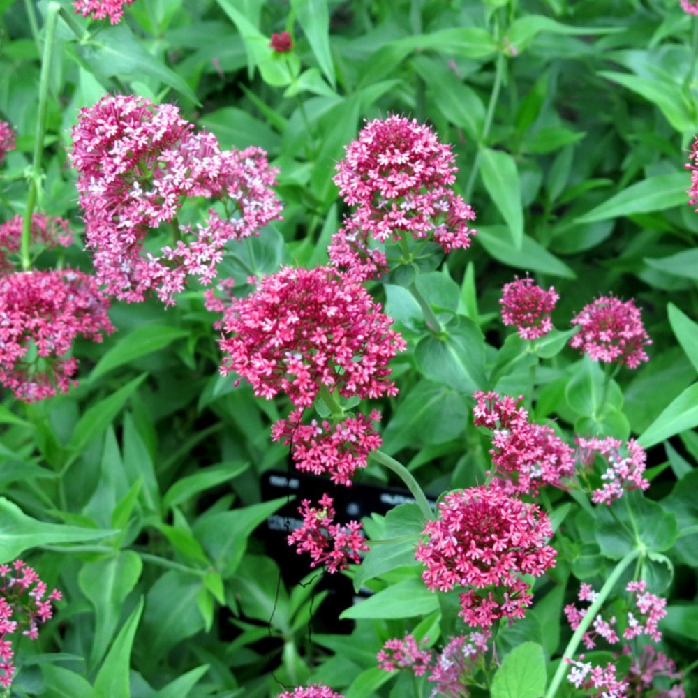Валериана красная Кокцинеус - цветки ярко-малиновые, мелкие, многочисленные, собраны в крупные, разветвленные, куполообразные соцветия. Цветение в июне-июле. Листья сизо-зелёные. Высота 70-80 см. Место солнечное, тёплое, даже жаркое. Почва дренированная. Зона 5 (до -23°С)
