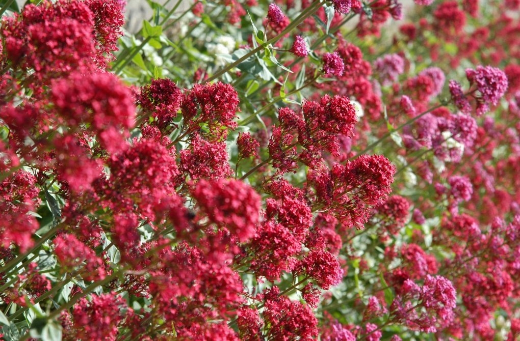 Кентрантус или валериана красная - эффектный многолетник, одно из достоинств которого - неприхотливость. Хотя кентрантус и относится к подсемейству Валериановых, он, в отличие от своей всем известной родственницы, лекарственными свойствами не обладает. Зато он очень красив и украсит любую клумбу. Высота растения - до 80 см. Растет в виде небольшого кустика, шириной до 60 см. Листья сизо-зеленые, супротивные. Соцветия похожи на сирень, состоят из многочисленных мелких розово-красных цветков. Выведены формы с белыми цветками (сорт "Albiflorus"). Цветет кентрантус продолжительно - в течение всего лета, имеет небольшой плод-орешек.