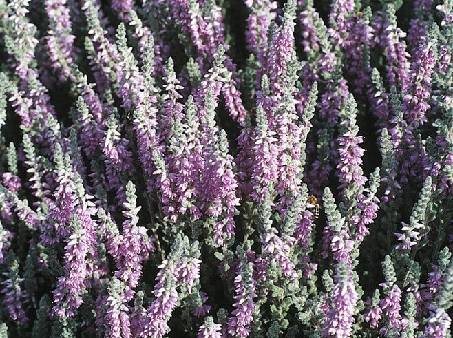 Вереск обыкновенный сорта Grizabella - широкий, карликовый, вертикальнорастущий кустарник высотой 20-30см. Цветки многочисленные, мелкие, фиолетово-розовые; листья игловидные или чешуевидные, серебристо-серые. Хорошо стрижется.