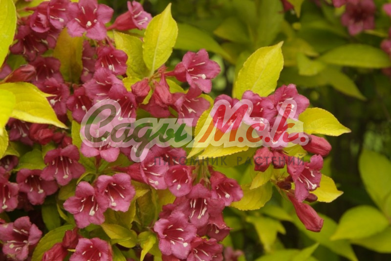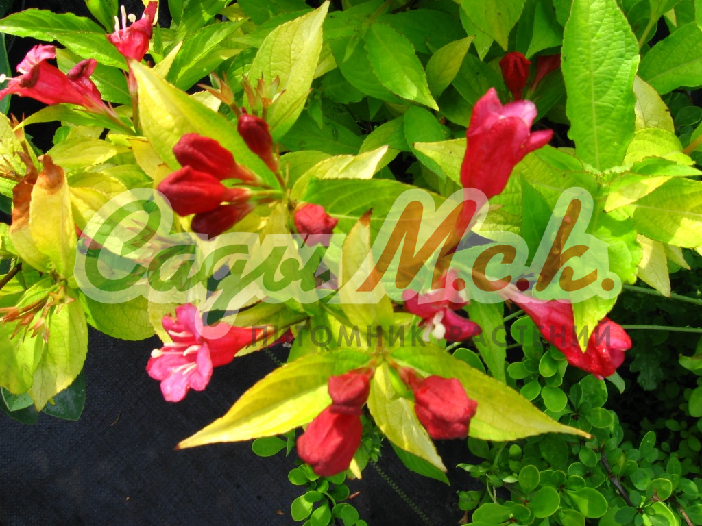 Вейгела цветущая Alexandra – многолетний кустарник до 3 м высотой и 1 метр в ширину с пурпурными цветками, собранными по 3-4 штуки в соцветия. Цветет обильно, начиная с конца мая-начала июля в течение 20-25 дней. Ее родина – Северный Китай и Япония. Этот сорт также именуют Wine and Roses. Листья у цветущей вейгелы с коротким черенком, почти прилеплены к веткам, заостренные на конце. Почвы любит щелочные, рыхлые, с перегноем. Прикорневое место нужно на зиму засыпать измельченной корой или опилками слоем в 10 см. Сам куст нужно стянуть веревкой, прижать к земле и присыпать листьями. При выращивании нельзя допускать пересыхания: нормой полива является 8 литров воды на 1 куст. Поливы надо начинать сразу после таяния снега, если зима была не снежная. Нуждается в фосфорно-калиевой подкормке во время формирования бутонов.
