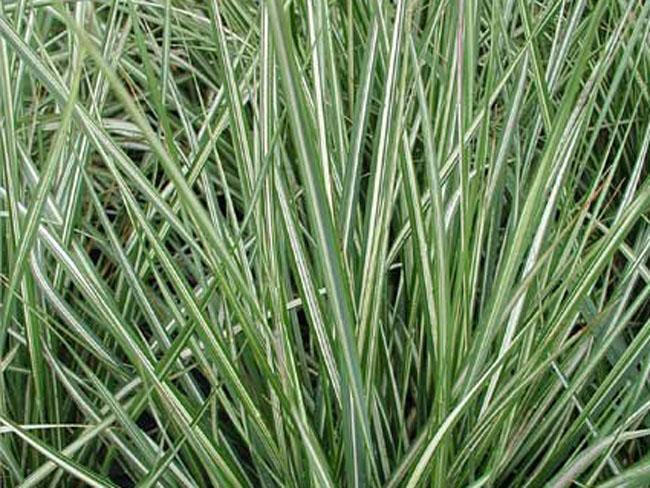 Прибрежное растение. Исключительно декоративный злак с изящно изогнутыми листьями, тёмно-зелёными c белой полосой по середине. Образует большую куртину. Высота листьев 50-75см, высота цветоносов 110-120 см. Соцветия-метёлки узкие, длиной 15-20 см, появляются в июне и остаются декоративными осенью и зимой. Вначале они розовато-зеленоватые, затем коричневеют, потом образуют густой золотистый веер. Место солнечное или полутенистое.