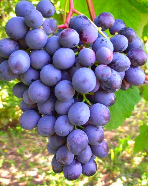 Виноград плодовый АГАТ ДОНСКОЙ - сильнорослый, столовый сорт винограда с повышенной устойчивостью к болезням и морозу. Грозди Агата донского крупные, конические, умеренно-плотные, иногда рыхлые, средним весом 400-600 г. Ягоды крупные, диаметром 22-24 мм, весом 4-5 г, округлые, темно-синие, простого вкуса. Кожица ягод плотная, но не грубая, мякоть мясистая. Цветки у сорта Агат Донской обоеполые. Побеги вызревают очень хорошо. Транспортабельность средняя. Агат Донской повышенно устойчив к морозам (-26°С), милдью, серой гнили.