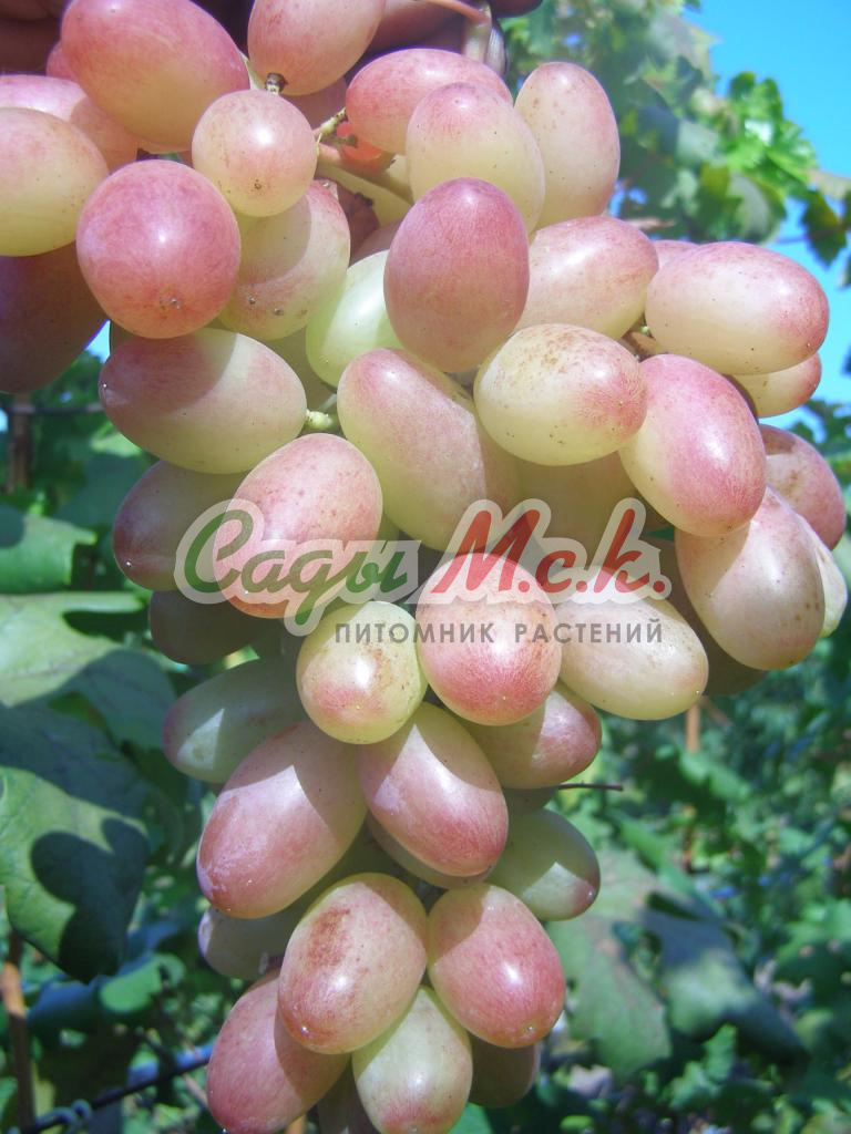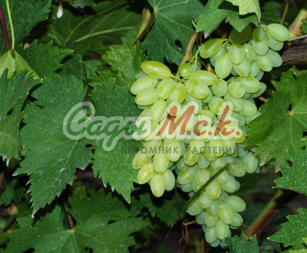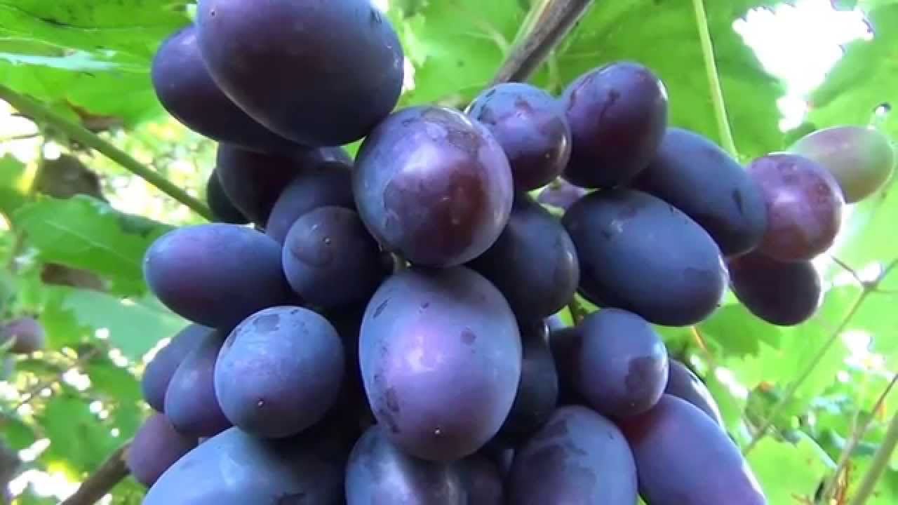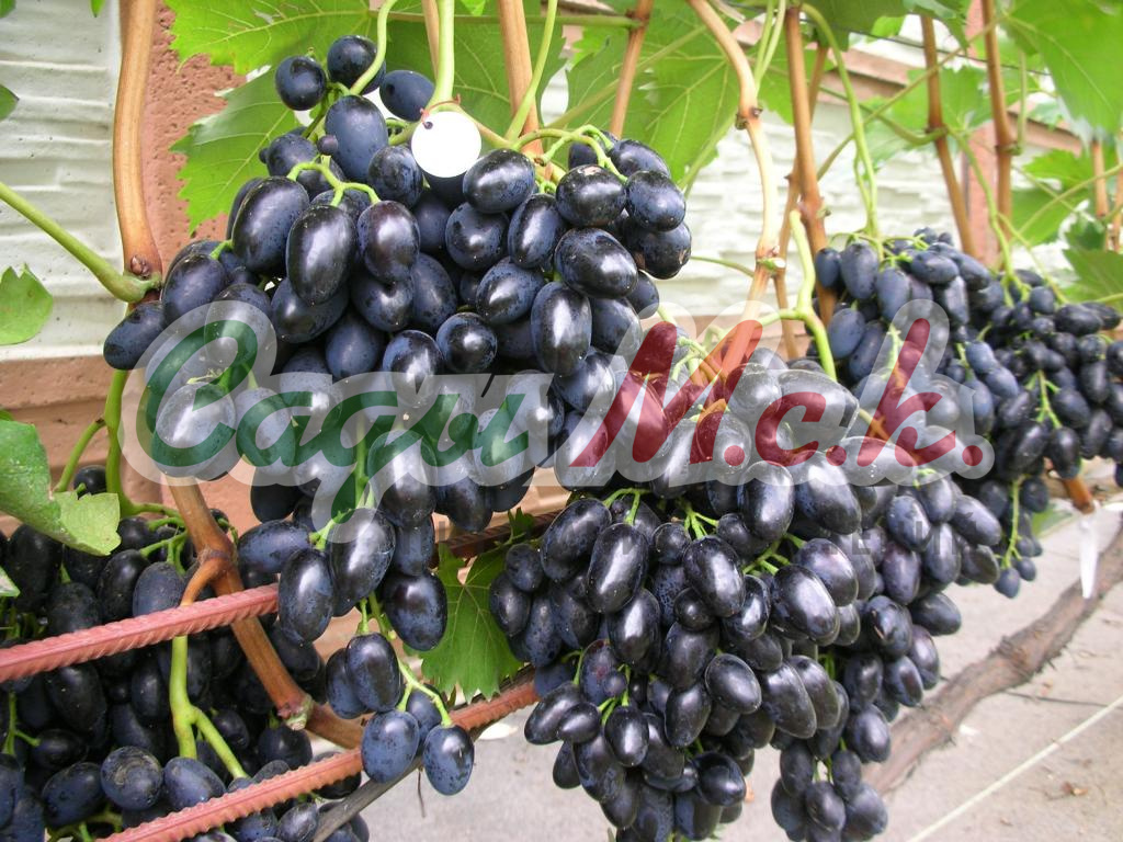 Виноград плодовый Викинг - столовая гибридная форма винограда очень раннего срока созревания (100 – 110 дней). Сильнорослая. Лист крупный пятилопастный, с открытой черешковой выемкой. Цветок обоеполый. Грозди крупные, конические, средне-рыхлые. Ягоды крупные (22 мм x 34 мм), сосковидные, тёмно-синего цвета. Мякоть ягод плотная с гармоничным вкусом. Кожица ягод при еде не ощущается. Ягоды способны храниться на кустах до конца сентября месяца. Вызревание побегов полное и раннее. Устойчивость к милдью, оидиуму и морозостойкость высокие.
