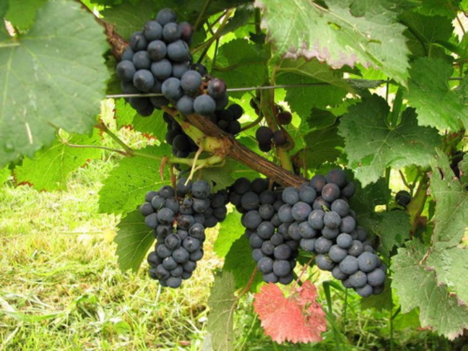 Виноград винный Голубок - технический сорт винограда. Молодые листья зеленые с бронзовым оттенком и винно-красным окаймлением, опушение с обеих сторон паутинистое, средней густоты. Цветок обоеполый. Гроздь средней величины (длиной 15-17, шириной 9-11 см), коническая и цилиндро-коническая, с крылом, средней плотности. Ножка грозди короткая - длиной 4 см, травянистая. Средняя масса грозди 100-120 г. Ягода средней величины (диаметром 15 мм), округлая, черная с сильным восковым налетом. Средняя масса 100 ягод 160 г. Кожица тонкая, прочная. Мякоть сочная, сок интенсивно окрашенный. Вкус простой, приятный, с тонами черной смородины и мака. Урожайность довольно высокая.