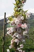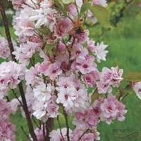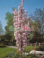 Вишня/сакура мелкопильчатая Аманогава - привитая форма сакуры на штамбе определённой высоты. Имеет плотную, колоновидную крону с вертикальными, густоразветвлёнными, часто с несколькими сильными основными стволами. По сравнению с другими сакурами, она как бы растёт в форме ракеты. Размер: достагиет высоты 4-7 м. и 1-2 м. в диаметре. Годовой прирост в высоту 30 см., в ширину 5 см. Кора: светло-коричневая. Листья: расположены поочерёдно, остро-эллиптические, 8-12 см. длиной, при распускании жёлто-коричневые, летом тёмно-зелёные; осенняя окраска жёлто-оранжевая. Цветение: многочисленные, душистые, слабо-махровые, светло-розовые цветки, 4 см. в диаметре, на длинных цветоножках, собраны в пучки по 3-5 штук, расположенные вдоль всей длины ветвей. Цветёт в конце апреля - начале мая