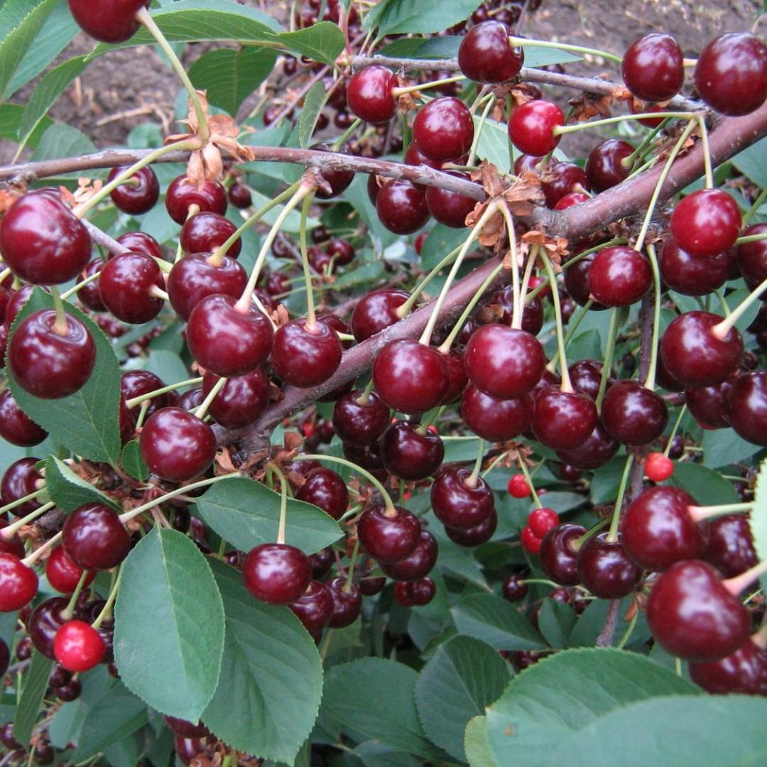 Саженцы вишни обыкновенной Студенческая обладают целым набором качеств, которые позволяют называть этот сорт сильным и перспективным. Дерево незначительной силы роста. Крона обратнопирамидальная, немного приподнятая. Крупномер формы Студенеческая плодоносит чаще всего на букетных веточках. Созревает в средний срок. Ягоды величиной примерно 4 г, темно-бордового (ближе к черному) цвета. Вкус приятный, с ощутимой сладостью.