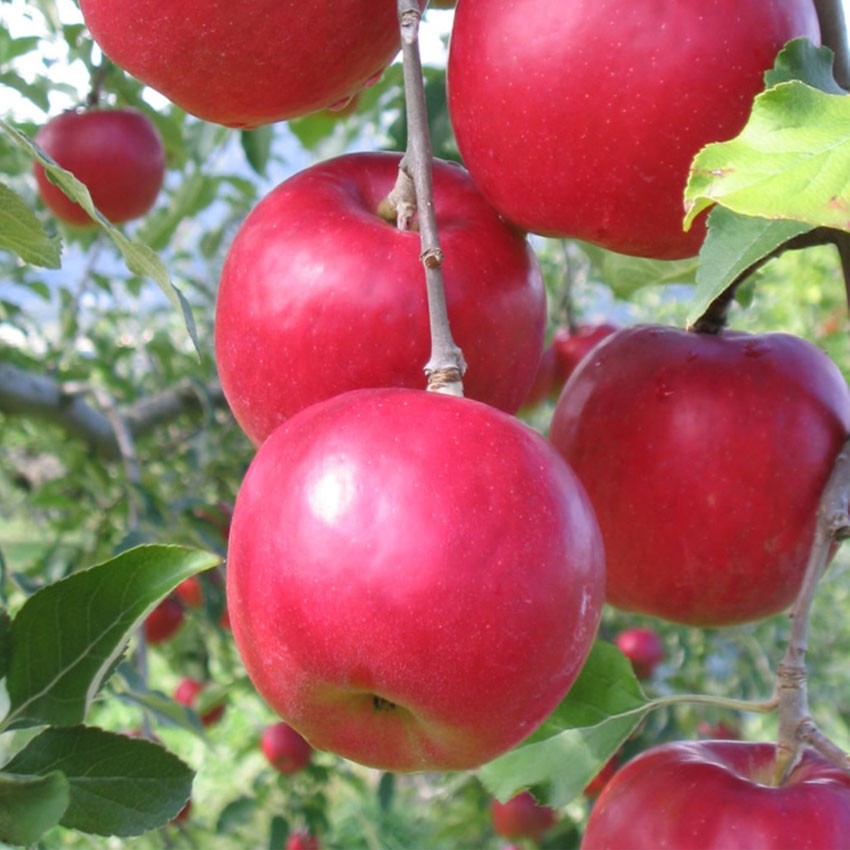 Саженцы яблони Афродита принадлежит к зимним сортам. Дерево крупное, крона округлая, умеренной густоты. Кора на ветвях гладкая, коричневого окраса. Побеги изогнутые, бурые с конической формой почек. Листья небольшие, удлиненные со скрученной верхушкой, насыщенного зеленого оттенка, матовые. Плод небольшой, 125 г, с нежной, глянцевой кожицей, зеленоватого окраса с малиновыми крапинами. Мякоть плотная, сочная, кисло-сладкая на вкус. Крупномер яблони Афродита относится к зимостойким сортам. Зрелость плодов приходится на середину сентября, плоды отлично хранятся до декабря. Растение дает отличный урожай, около 125 ц с гектара. Достоинства: устойчивость к парше, отличные потребительские качества.