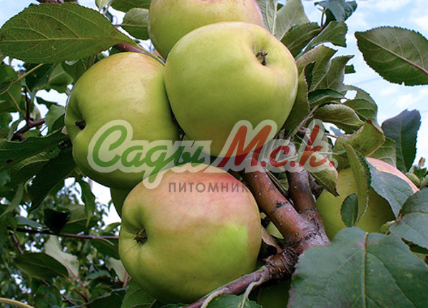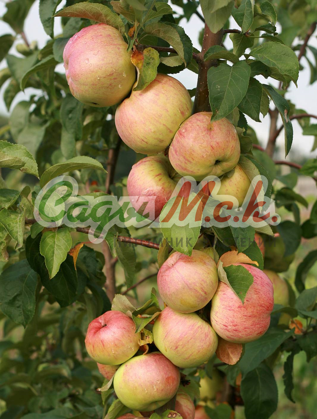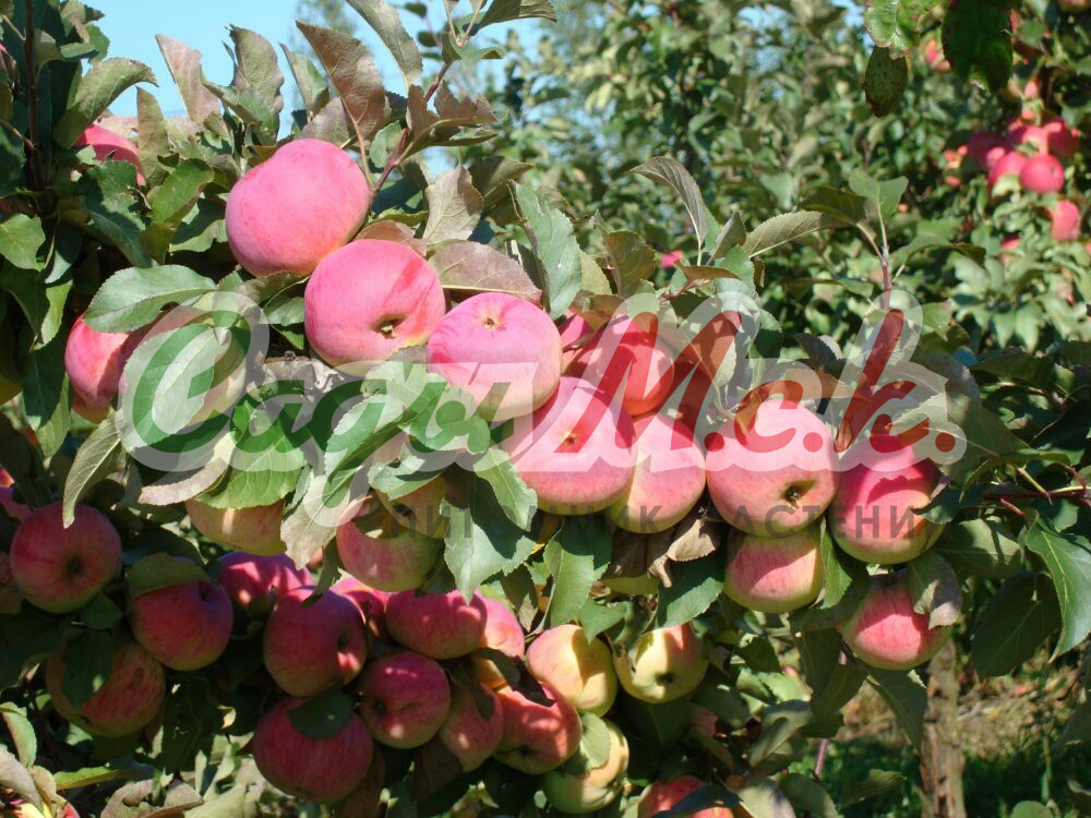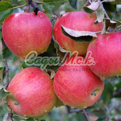 Саженцы яблони Брусничное принадлежат к сорту интенсивного типа. Дерево среднерослое, крона густая, ветви прямые с гладкой корой серого цвета. Побеги бурые, листья прямые, глянцевые, зеленые. Плод средний, правильной формы, кожица зеленовато-лимонного оттенка, основной окрас малиновый с крапинками, видны семена. Мякоть сочная, сладкая, ароматная.Сорт яблони Брусничное является перспективным для посадки, созревает в раннеосенний период. Преимуществами дерева являются: высокая урожайность, устойчивость к заболеваниям и низким температурам, вкусовые качество плода.