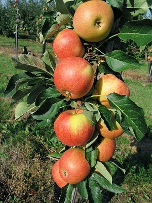 Яблоня Есения - сорт средней силы роста, иммунный к парше, поздне-осеннего - ранне-зимнего срока потребления. Плоды выше среднего размера, средней массой 170 г. Окраска плодов жёлто – зелёная с сильным румянцем красного цвета. Вкус сладкий с приятной кислинкой. Дегустационная оценка 4,3-4,4 балла. Урожайность высокая.