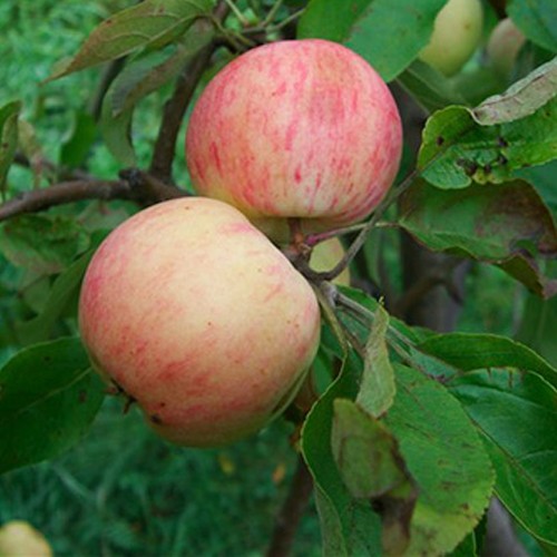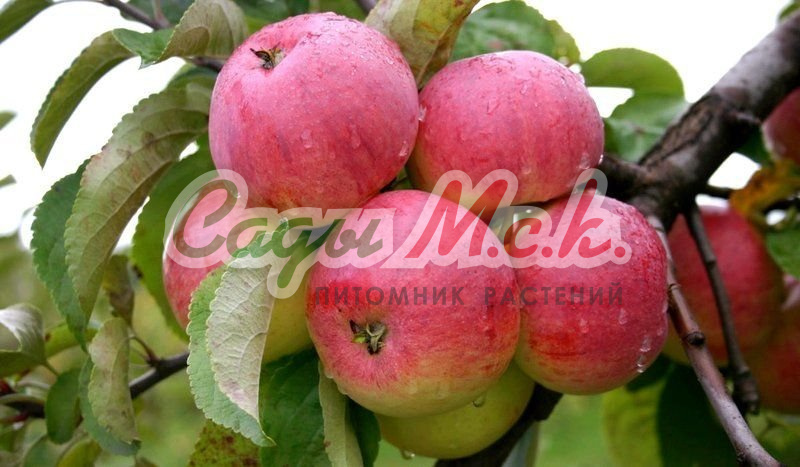 Саженцы яблони Грушовка московская принадлежат к известному русскому сорту. Крупное дерево с густой листвой, прочной кроной, оранжево-золотистыми ветвями. Побеги коричневые с блестящей корой. Листья длинные, крупные, прямые, цветки розовые, удлиненные. Плод небольшой с гладкой кожицей желтоватого цвета, покровная окраска румяная с крапинками. Плодоножка короткая, толстая. Мякоть розовая, рыхлая, очень ароматная, кисло-сладкая. Крупномер яблони Грушовка московская отличается высокой степень морозостойкости, характеризуется обильным урожаем.