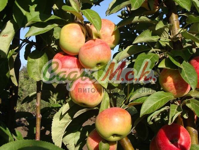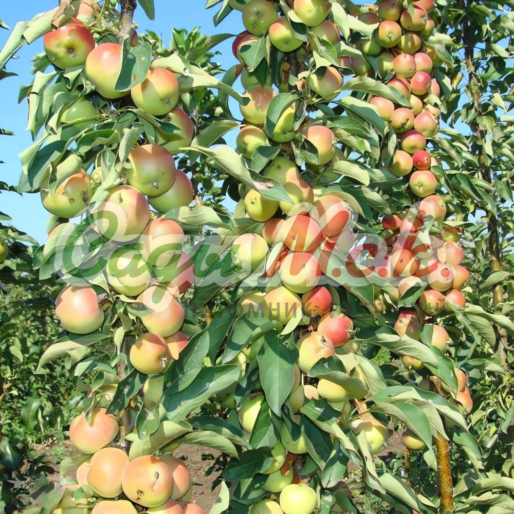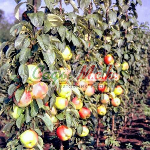 Саженцы колоновидной яблони Останкино принадлежат к сортам, устойчивым к заболеваниям. Дерево низкорослое, компактное, ствол прочный, выдерживает обильные урожаи. Плод средний, ярко-желтого оттенка с красным румянцем. Мякоть сочная, кисло-сладкая, структура мелкозернистая.