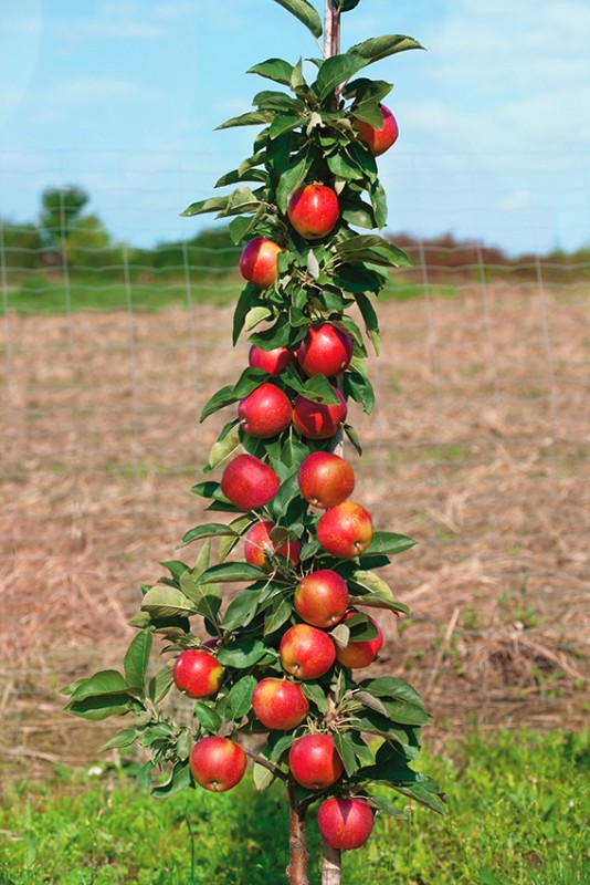 Саженцы колоновидной яблони Валюта рекомендуются к посадки в средней полосе. Низкорослое дерево, способное принести обильный урожай, малые габариты, компактность привлекают большинство садоводов. Плод крупный, максимальной массой 250 г, округлой формы, с тонкой кожицей, глянцевый, золотисто-желтого цвета, покровная окраска формируется по бокам – красная. Мякоть сочная, ароматная, с небольшой кислинкой, структура мелкозернистая.