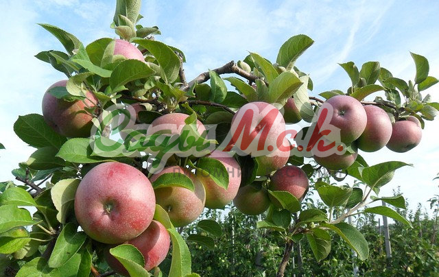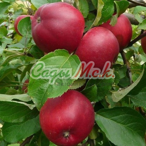 Саженцы яблони Мартовское принадлежат к скороплодным сортам. Дерево внушительных размеров с широкопирамидальной формой, ветви толстые, компактные. Побеги опушенные, вишневого оттенка с мелкими чечевичками. Листья средние, со скрученными кончиками. Цветки белые, очень ароматные. Плод средний, 145 г, округлой формы, гладкий с плотной кожурой. Покровный окрас – буро-красный с подкожными точками. Мякоть мелкозернистая. Сочная.