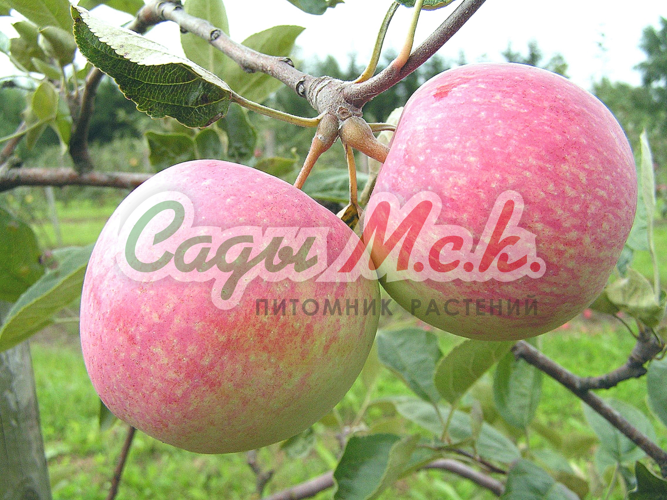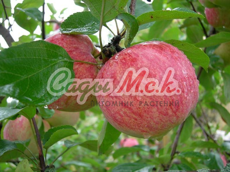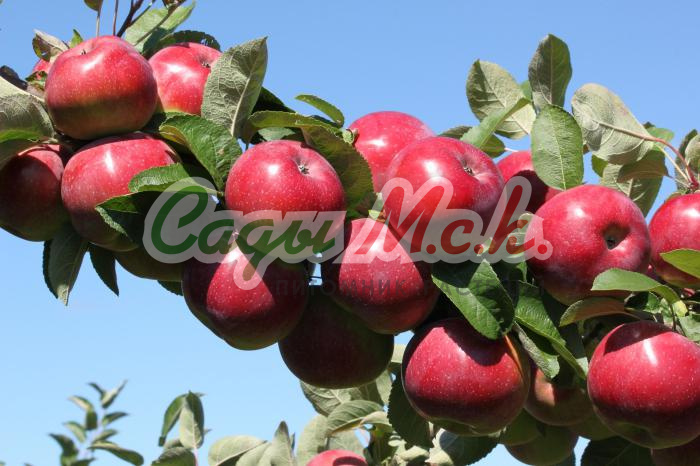 Саженцы яблони Сябрын относятся к позднезимним сортам. Дерево высокое, крона округлая. Плод крупный, красной покровной окраски с плотной кожицей, но при обильном урожае мельчает. Мякоть сочная, немного жесткая, кисло-сладкого вкуса.