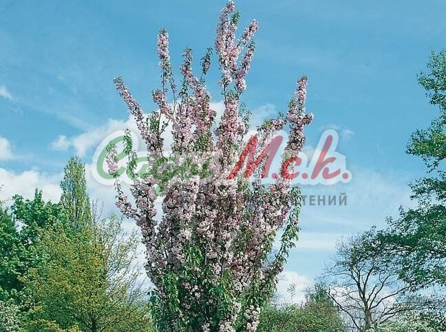 Яблоня Van Eseltine - изумительный сорт декоративной яблони. У молодого растения крона - колонновидная, у взрослого - более широкая. Высота взрослого растения: 4 - 6 м., диаметр кроны: 3 - 4 м. Листья эллиптические или яйцевидные, сверху - насыщенно-зелёные, с нижней стороны - светлее. Края листьев - мелкозубчатые. Бутоны - розово-малинового цвета, распустившиеся цветки - светло-розовые или розово-белые с жёлтыми тычинками. Цветёт растение обильно в конце мая - первой половине июня. Плоды многочисленные, округлые, мелкие (диаметром 1 - 1,8 см.), жёлто-красные или оранжево-красные (в созревшем состоянии) съедобные яблочки, располагающиеся на черешках. Плоды созревают во второй половине августа - сентябре.