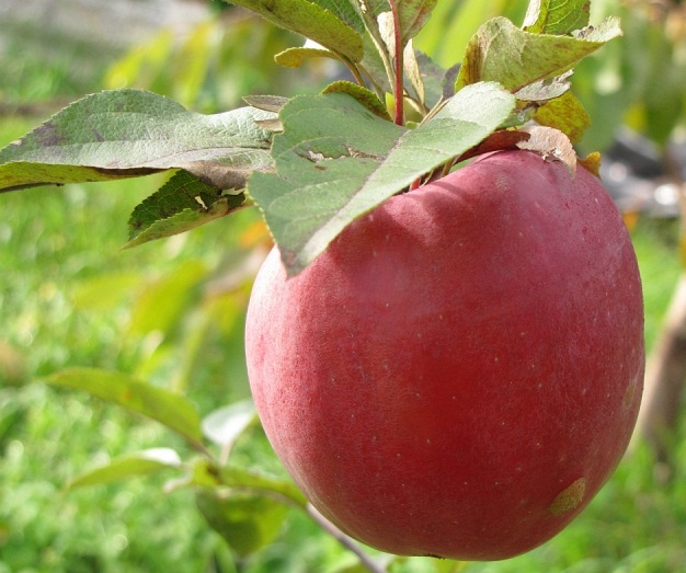 Саженцы яблони Зимняя красавица принадлежат к зимостойким сортам. Дерево среднерослое с округлой кроной, ветви прямые, длинные, листья ярко-зеленого оттенка, с опушением. Плод крупный, 175 г, конической формы, гладкий, с зеленоватой кожицей, покровный окрас в виде пурпурного румянца, подкожные точки отсутствуют. Мякоть средней плотности, сочная, мелкозернистая, кисло-сладкого вкуса. Крупномер яблони начинает созревать в позднезимний период, отличается длительным хранением плодов – до конца апреля. Преимущества: высокая зимостойкость, урожайность, вкусовые качества плода.