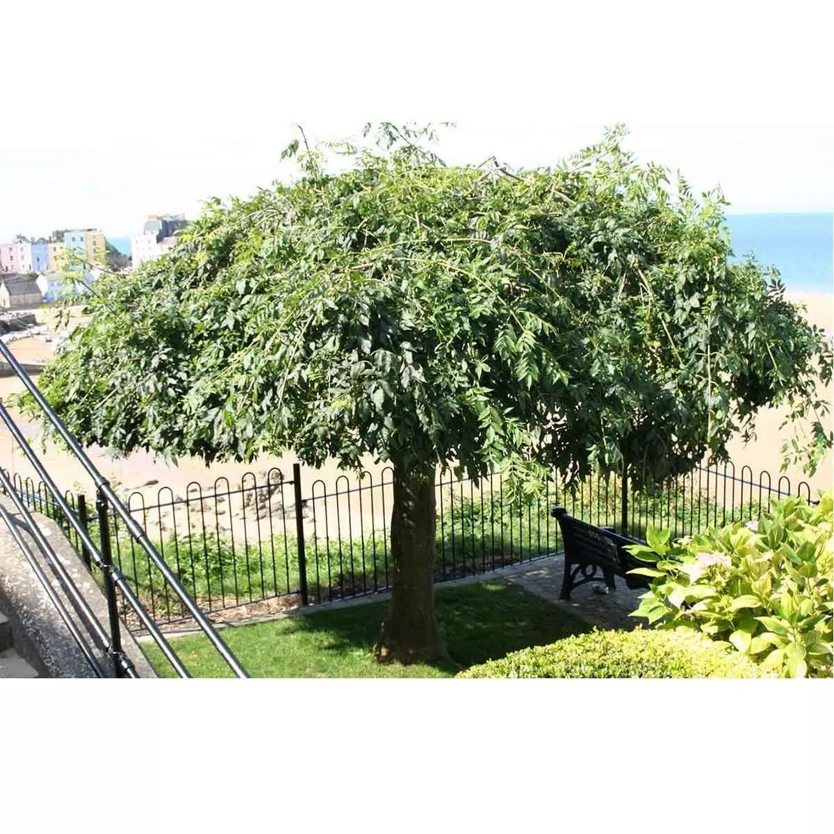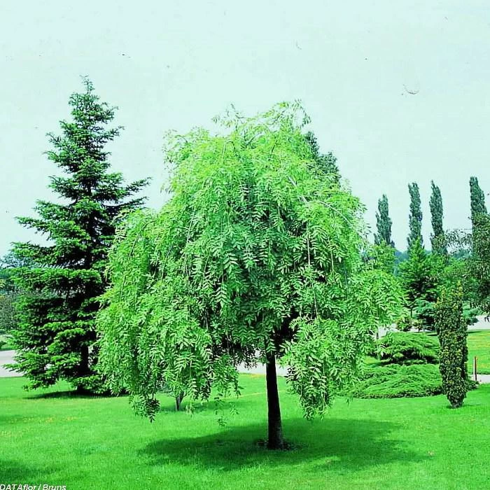Плакучая крона ясеня обыкновенного Пендула выглядит очень привлекательно благодаря длинным побегам, свисающим до самой земли и скрывающим толстый ствол, из-за чего дерево кажется пушистым зеленым шатром. Листва этого ясеня ярко-зеленая, очень густая, но благодаря продолговатой форме листьев и их небольшому размеру, воздушная и легкая.