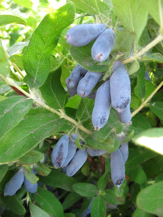 Саженцы жимолости Славянка принадлежат к зимостойким сортам. Кустарник сильнорослый, формирует густую крону, побеги средние, светло-розового оттенка, прямые, опушение слабое, листья темно-зеленые. Плод крупный, овальной формы, синего окраса. Кожица тонкая с небольшим восковым налетом, мякоть сочная, ароматная, сладкая. Крупномер жимолости Славянка отличается высокой урожайностью, предназначен для производственного возделывания. Достоинствами сорта являются морозостойкость,устойчивость к болезням и вредителям, десертный вкус плодов.