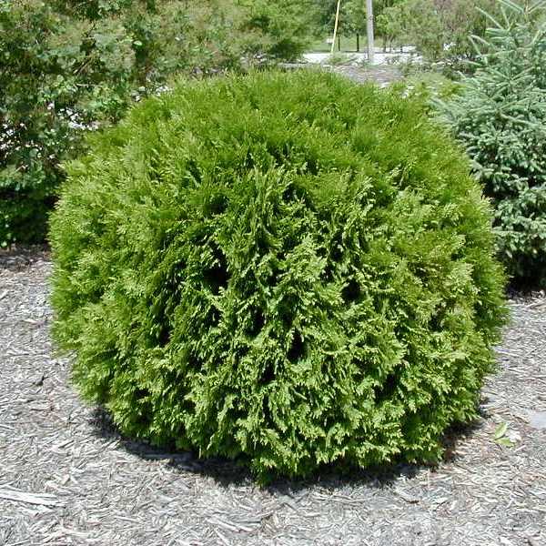 Крона шаровидная, позднее становится более широкой, вырастает в высоту до 1,5 метров в 10 лет. Одна из немногих туй, которая обладает округлояйцевидной формой кроны и достаточным ростом, чтобы выступать в качестве солирующего растения в композициях. Побеги густые, прямые , плоские. Хвоя от темно-зеленой до светло-зеленой. Плоды – маленькие коричневые шишки.